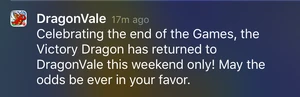- The Victory Dragon's auction ended on June 25, 2017 when the price rose from 250 to 2,500 gems.