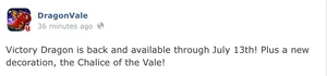- On June 24, 2017, the Victory Dragon was listed on sale at a reduced price for a limited period of time.